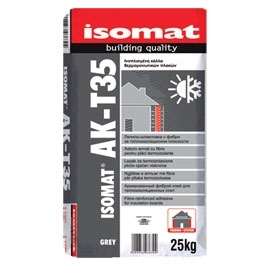 Η ISOMAT AK-T35 είναι μία ινοπλισμένη κόλλα τσιμεντοειδούς βάσης, ενισχυμένη με πολυμερή συστατικά (ρητίνες). Χρησιμοποιείται, σε συνδυασμό με τους σοβάδες MARMOCRET PLUS και MARMOCRYL, ως σύστημα για την εξωτερική θερμομόνωση κατασκευών. Είναι κατάλληλη για την επικόλληση των θερμομονωτικών πλακών πολυστερίνης στις εξωτερικές όψεις των κτιρίων. Επιπλέον, οπλισμένη με υαλόπλεγμα, χρησιμοποιείται για την επικάλυψη των θερμομονωτικών πλακών και αποτελεί έτσι το ιδανικό υπόστρωμα για το σοβά που θα ακολουθήσει.
