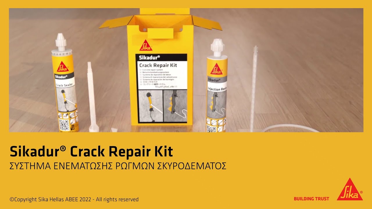 Το Sikadur® Crack Repair Kit αποτελεί ένα πλήρες σύστημα για την επιφανειακή σφράγιση και πλήρωση ρωγμών μικρού ή εξαιρετικά μικρού πλάτους σε σκυρόδεμα και σε τοιχοποιία. Περιλαμβάνει ένα 2-συστατικών, πολυεστερικής βάσης, προϊόν επιφανειακής σφράγισης ρωγμών, μία 2-συστατικών, χαμηλού ιξώδους, εποξειδική ρητίνη ενεμάτωσης και όλα τα απαραίτητα παρελκόμενα που χρειάζονται για την εφαρμογή